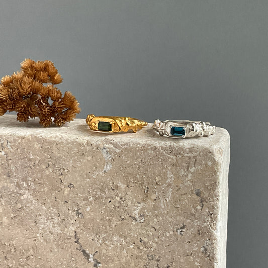 PLETHORA EMERALD CUT SILVER/ GOLD GEMSTONE RINGs