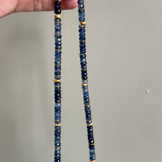 INDIAN SUMMER BEADED GOLD VERMEIL NECKLACE - BLUE SAPPHIRE