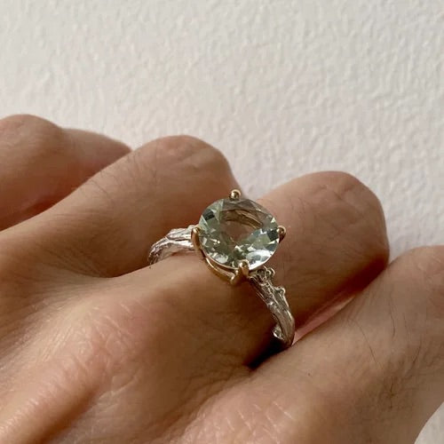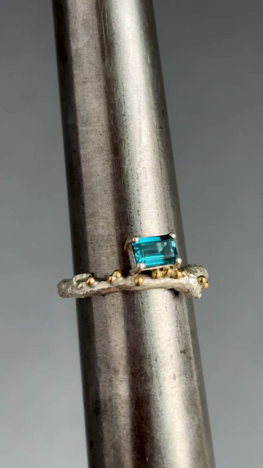 TIERRA LIGHT AQUA STERLING SILVER /9KT GOLD RING