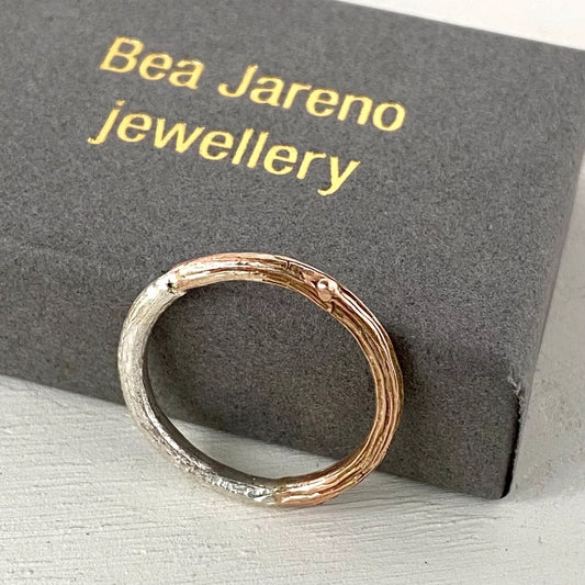 TIERRA 9KT YELLOW & ROSE GOLD TEXTURED RING
