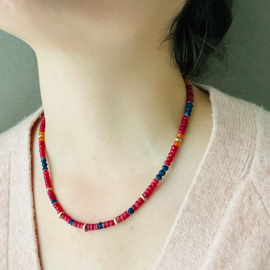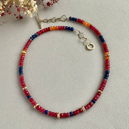INDIAN SUMMER BEADED 9KT GOLD NECKLACE- RUBY