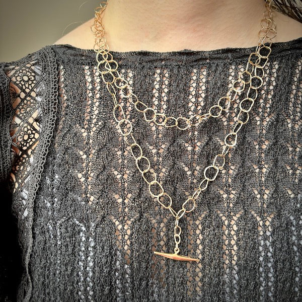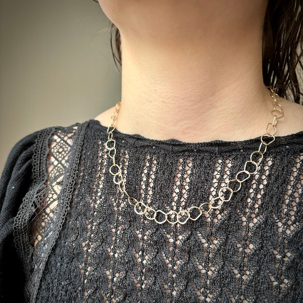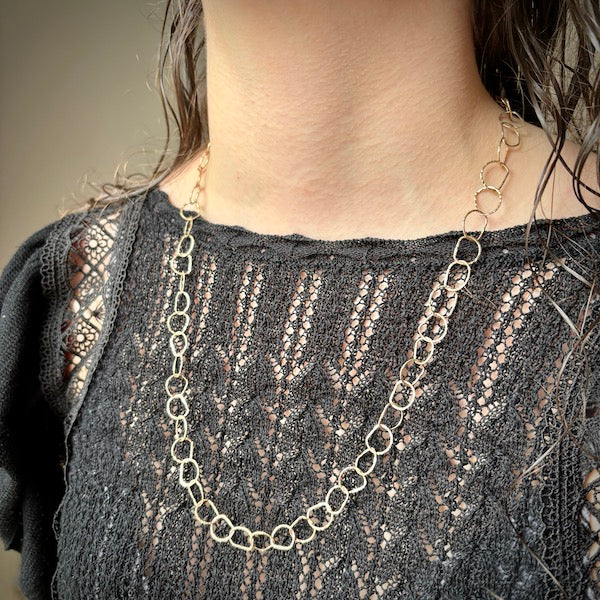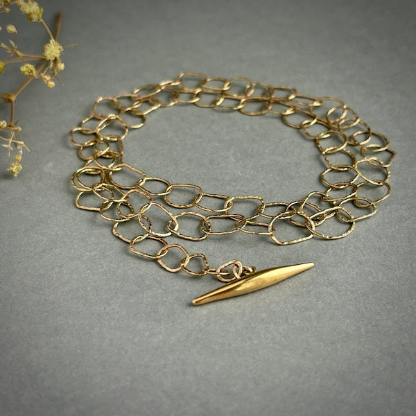 Gorgeous signature handcrafted textured links single length necklace in recycled 9kt yellow gold,  handcrafted fully at our West London studio.